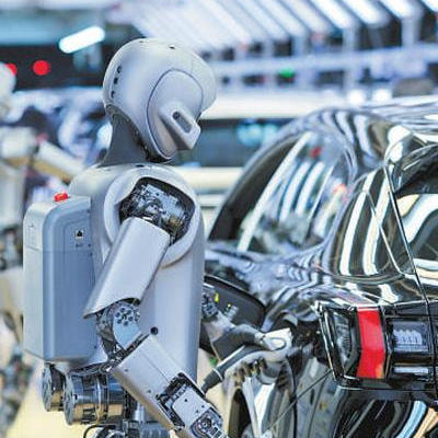 配送机器人在写字楼内,将外卖送到员工办公桌上。